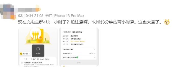 “充电1小时3分钟按两小时计算,收费也太贵了”