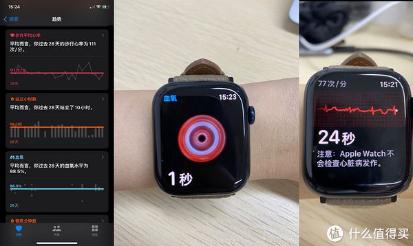 3.心率 &血氧监测:在阳过后会非常注意自己心率跟血氧的数值变化,心率监测可以做24小时心电图监测,也可以提前设置高、低心率提醒监测测心率变化;关于血氧的监测,对比过医用血氧仪的数据监测数据,数值基本一致;但我个人认为这些数据是仅做健身健康用途,不能用做医疗目的,身体不适还是要及时就医;
