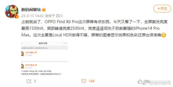 旗舰不愧是旗舰,堆料就是猛!OPPO Find X6 Pro才曝光影像跟华为P60 Pro一样做暗光长焦技术,现在屏幕还要升级,除了基础的分辨率跟刷新率,还要把亮度打到天花板的等级,iPhone都被干碎了。