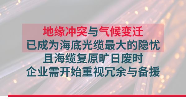 当然有的。首先是地缘危机,全球有几个越来越严重的地缘冲突正在酝酿,如果关键海缆转接点附近发生冲突,后果难以评估。