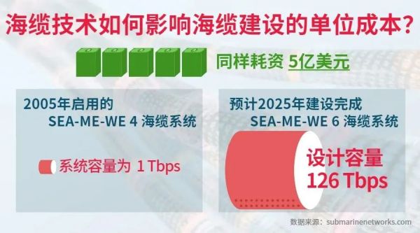 但即便海缆成本上升了,企业用户却不需要担心太多,因为国际带宽平均价格仍在逐年稳定下降。我们借用芯片来解释,我们都知道最新技术制造的芯片成本较高,但其运算能力却远超旧款,所以最终得到更高的性价效能比。相同道理,受益于海缆制造技术快速迭代,海缆铺设成本虽然增加,但目前最新的单条海缆带宽可以是过去的数倍,以致于最终用户可以取得更便宜的平均价格。