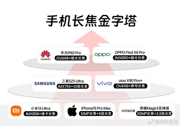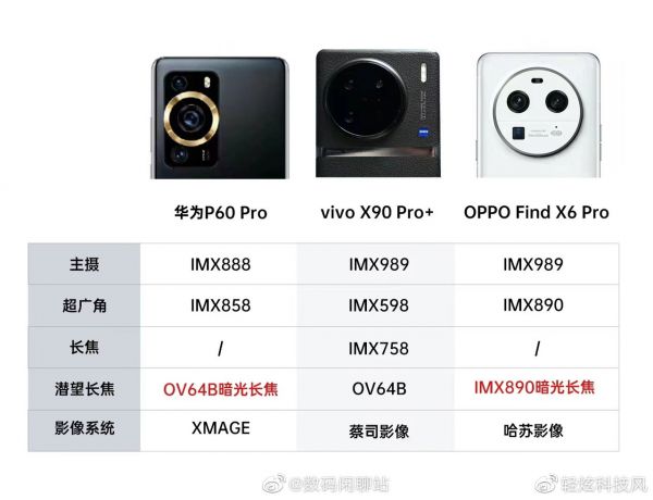 从最近的爆料来看,华为 OPPO 似乎给出了答案——暗光长焦。据说华为P60 Pro将用上不错的硬件(OV64B 传感器)+定制阵列(RYYB 滤色片)+算法,OPPO Find X6 Pro 则将用上顶级的硬件(IMX 890 大底传感器)+自研芯片(马里亚纳 X)+算法,两家的实际效果估计都会很不错。
