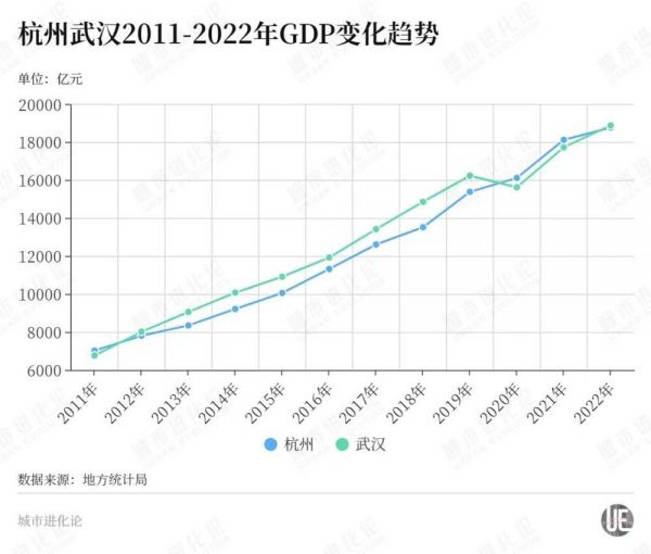 与此同时,杭州维持了短短两年的GDP优势,被武汉再度反超,退回全国GDP第九城。