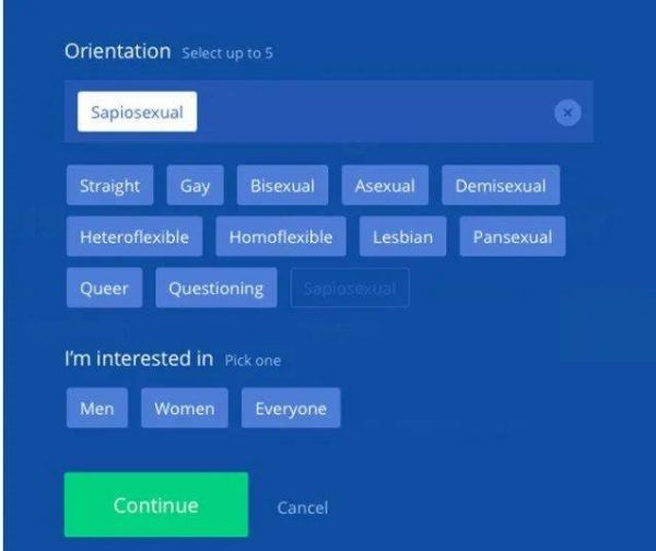 事实上,智性恋在主流观点中一直没有被定义成真正的性向。OkCupid 在 2014 年把智性恋列为取向之一后,他们的发言人还专门就这个问题发出过声明,说增加“智性”这个词,是为了改善用户体验,因为他们的用户偏向重视智识的群体,并不代表官方承认这是一个新的性向。