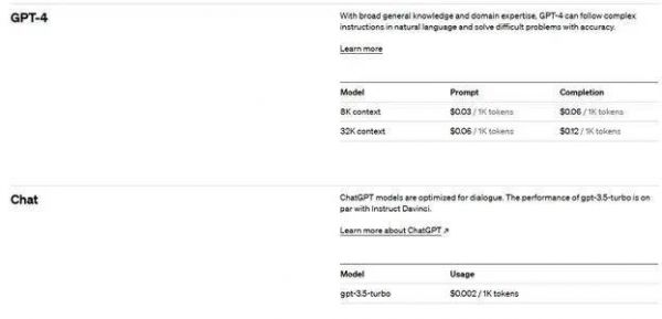 实际上,这些AI助手的运行成本并不低。按照Open AI公布的GPT-4的API费用表,为每输入1000个字符(约合750个单词),价格为0.03美元,每生成1000个字符,价格为0.06美元。也就是说用户每问一次,成本差不多就是1毛钱。
