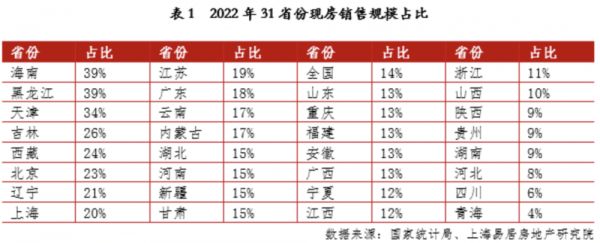 在2022年,超过全国14%现房销售规模占比水平的城市就有16个。