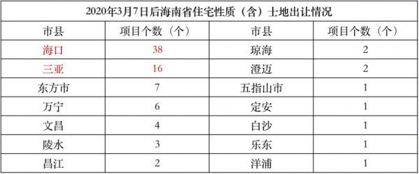 自2020年3月推行现房销售后,海南合计出让住宅性质土地超80宗,但这些土地主要还是集中在两个区域:海口和三亚。