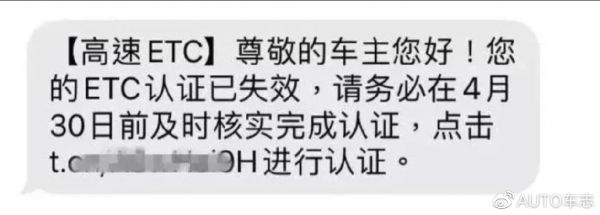 车主首先会收到诈骗短信,谎称ETC已失效