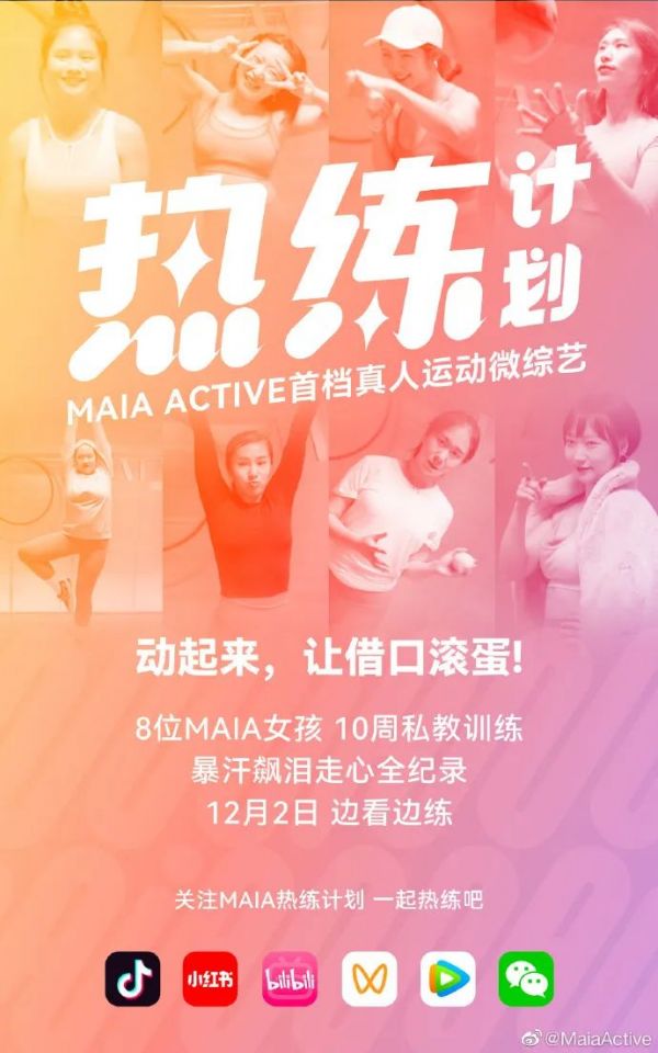 公平地说,在女性话题里,MAIA ACTIVE算得上这一领域的持续耕耘者。2021年,MAIA ACTIVE将品牌Slogan从“It's good to be me”改为了“Be as you wish”,强调“鼓励并帮助女性发现并成为真实的自己,活成自己喜欢的样子”,近几年也持续推出相关营销活动,如采用素人而非明星作为“代言人”,推出素人运动微综艺《热练计划》,门店也会摆放“大码模特”。
