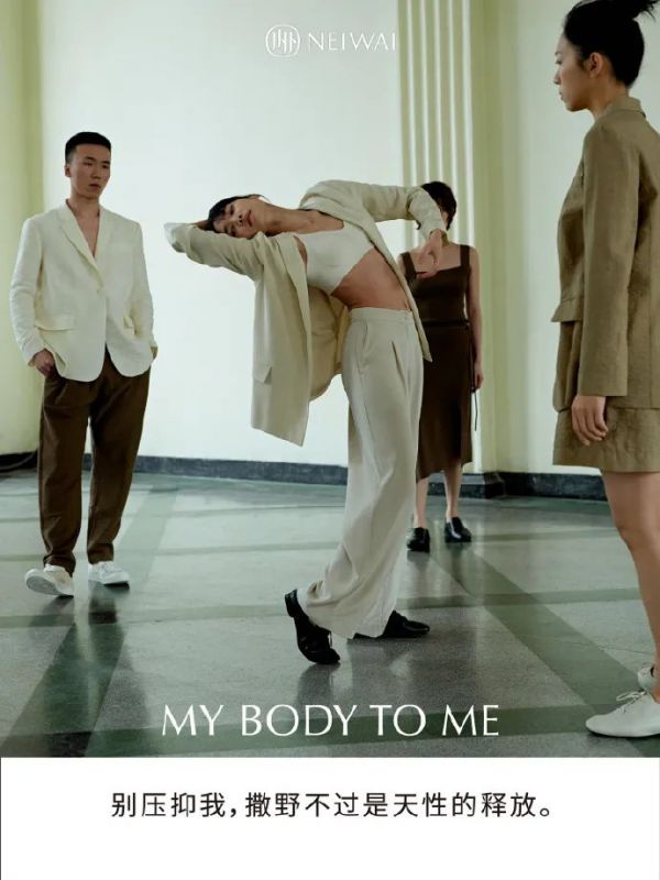 同样是做妇女节营销,贴身衣物品牌NEIWAI内外在社交媒体收获的更多是好评。品牌以“身体十问”为主题,通过一则以舞者为主题的微电影展示了女性当下面临的困境。严格来说,NEIWAI内外这次的营销思路说不上多么先锋或创新,但胜在轻巧有表现力,讲故事的形式本身也不容易招致反感。这也是NEIWAI内外长期以来的表现手法。