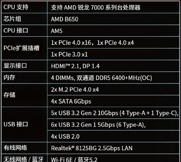 这个规格表来自一款售价1499元的B650主板,但它不仅不支持PCIe 5.0 M.2 SSD,也没有USB 3.2 Gen 2x2,而同样的售价,我们却能买到兼具这两个接口的其他B650主板,显然对于这样的主板,用户应该避坑。