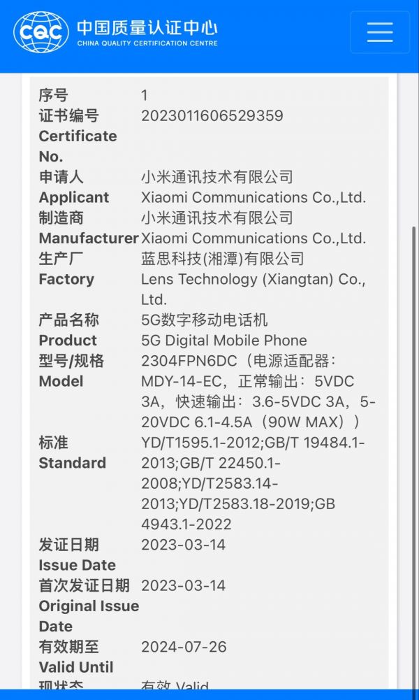 小米 13 Ultra 手机三证齐全:支持 90W 充电,只待发布