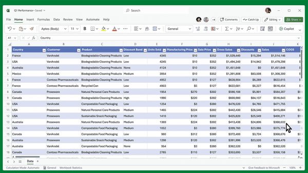 Excel 中的 Copilot :帮助用户在短时间内进行洞察、识别走势,创建具有专业外观的数据可视化内容。