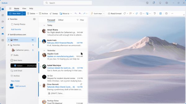 Outlook 中的 Copilot :可以帮助综合管理邮箱,让用户腾出时间花在实际通信上。