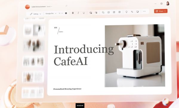 PowerPoint中的Copilot可以直接生成PPT。Copilot可以将现有的书面文档转换为包含演讲者注释和资料来源的幻灯片,或者从简单的提示、大纲开始新的演示。一键压缩冗长的演示文稿,或使用自然语言命令来调整布局、重新格式化文本和完美的时间动画。