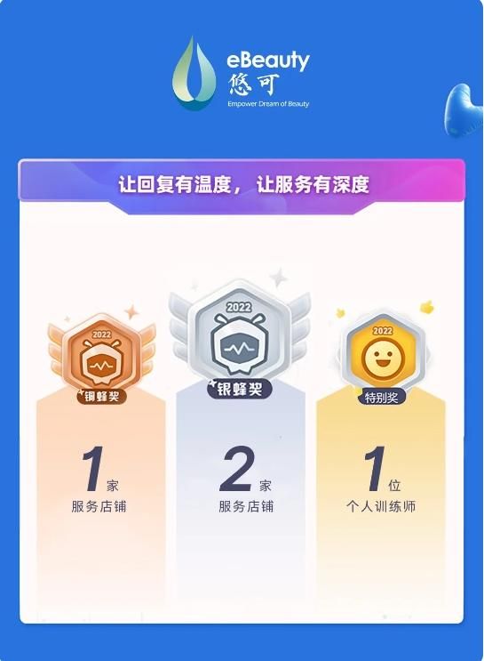 日前,2022年度阿里店小蜜双11蜂神榜揭晓,悠可直销中心服务的3个店铺凭借店小蜜在双11期间的智能个性化服务和优秀用户体验,斩获美妆/个护两大类目的2座银蜂奖和1座铜蜂奖。另外悠可店小蜜训练师团队拿下1个训练师个人特别奖。