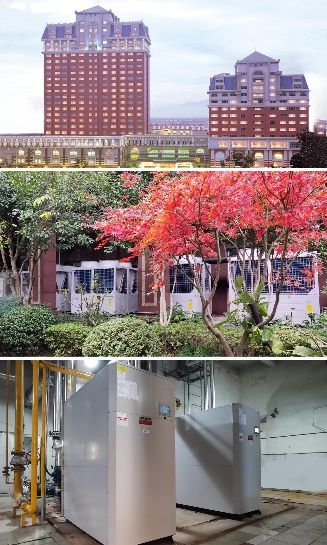 改造前:原先使用两台大型燃气蒸汽锅炉(1台3/t、1台4t/h),由于运行能耗高,维护保养成本逐年上升,且排放不达标,酒店业主亟需做机电设备及系统的换代升级