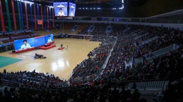 纳贡毕力格在体育馆讲课时的盛况 | 图片来源:鄂温克旗蒙医医院公众号
