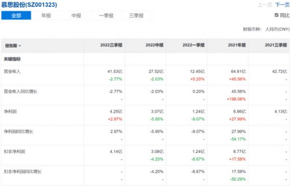 2022年三季度报显示,公司去年前三季度实现营收41.53亿元,同比下降2.77%;归属净利润约4.25亿元,同比增长2.97%。