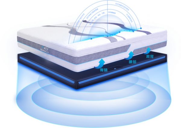 公开资料显示,智能床垫与床架配合,主要提供按摩、睡眠记忆、叫醒、软硬分区等功能。