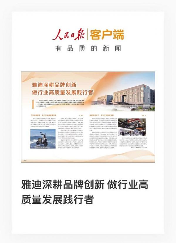 雅迪TTFAR石墨烯3代Plus电池雅迪高质量发展践行者的案例登上3月16日的《人民日报》国际版,其中提到了雅迪以科技创新赋能产品升级,完善绿色产业链布局,同时深耕海外市场,带领行业 发力中国品牌出海本土化发展。