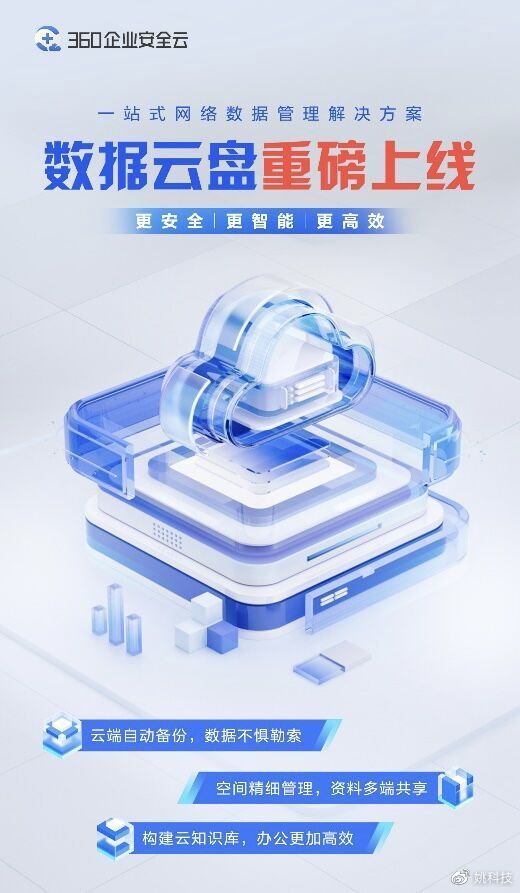 近日,360企业安全云正式推出数据云盘。作为一站式网络数据管理解决方案,数据云盘可以帮助企业实现数据在线备份、资料精细化管理和构建云知识库等,全面提升企业数据存储与管理能力,助力企业数字化管理提效。