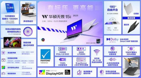 本次发布的无畏系列新品——华硕无畏15i 2023搭载了13代标压i5-13500H,通过了英特尔的Evo认证,并标配OLED华硕好屏。