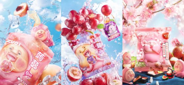 同时,ZUO一下也是爆火IP屁桃君中国独家运营代理,并在过去两年,与悲伤蛙、老夫子、海绵宝宝、汪汪队立大功、经典奥特曼等多款知名度较高的IP建立了合作,将其创意化运用在产品包装等方面。