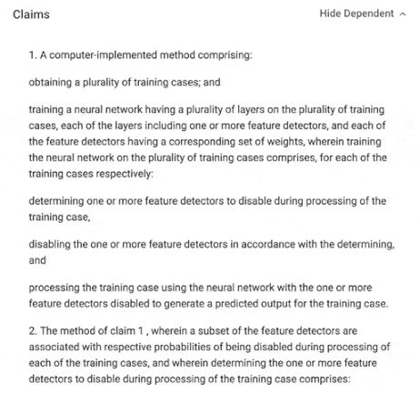 当然,在Dropout专利过期之前,所有人,所有要用到Dropout的人、公司、机构,都可能要面临一个被卡脖子的尴尬境地。