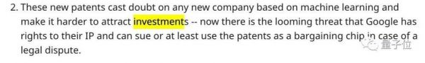 这样的专利,对任何年轻的机器学习公司都会有影响,让他们更难吸引到投资——现在谷歌对许多算法已经有知识产权了,(如果使用专利代码)随时可能被起诉。
