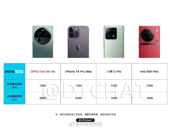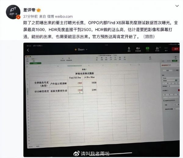 根据此次曝光的信息显示,OPPO Find X6系列有可能会上暗光长焦,对于影像系统有极大的增益。另外值得一提的是,据数码博主@数码闲聊站表示:“之前就说了,Find X6的屏幕亮度有惊喜。这次不只是全局1500nits。HDR最高亮度屏幕直接到了2500nit,亮度遥遥领先目前最强的iPhone 14 Pro Max。”