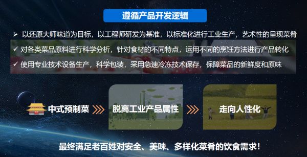 那如何做到大师的味道?要以还原大师味道为目标,以工程师研发为基准对各类菜品原料进行科学分析,针对食材的不同特点,运用不同的烹饪方法进行产品转化。使用标准化专业技术设备进行工业生产,采用急速冷冻技术保存,保障菜品的新鲜度和原味,最后艺术性地呈现菜肴。
