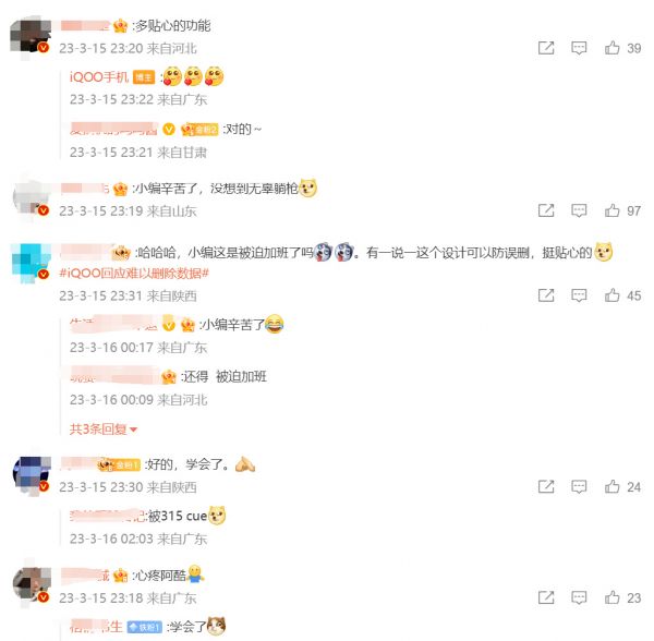 从官方回应也能看出,iQOO没有对315晚会曝光道歉,而是对广大用户进行温馨提示,不少网友笑称这是在“教央视做事”。而且也有一些网友指出,即便将电脑、手机进行格式化处理,一些“有心人”也能通过特殊手段进行恢复,普通人很难彻底清除电子设备上数据,除非具备一定专业知识。