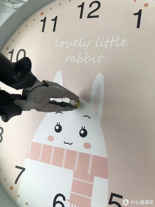 最后用老虎钳,把兔兔头上的那个螺丝拧松就可以把这个机芯扣下来了。