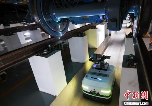 图为列车智能巡检机器人在进行巡检作业。 中新社记者 贾天勇 摄巡检作业更高效
