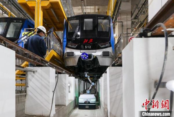 图为列车智能巡检机器人在进行巡检作业。 中新社记者 贾天勇 摄中新网北京3月17日电(记者 徐婧 杜燕)全景拍照扫描、5G信息回传……17日,在位于北京市通州区的地铁17号线次渠南停车场,一台列车检修“工程师”正在作业股道行走,检查列车车底的零部件。这是北京轨道交通行业首次应用的列车智能巡检机器人,与传统巡检工作相比,它的工作效率预计可提升30%以上。