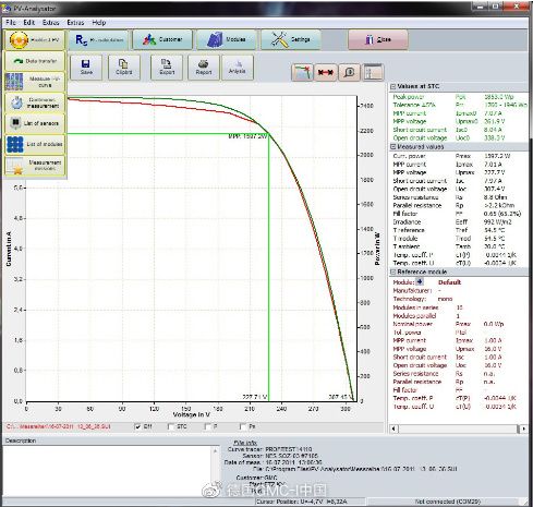 可以通过安装电脑端的PV-Analysator软件及固件,用来导出和分析IV曲线数据,并生成测试报告。