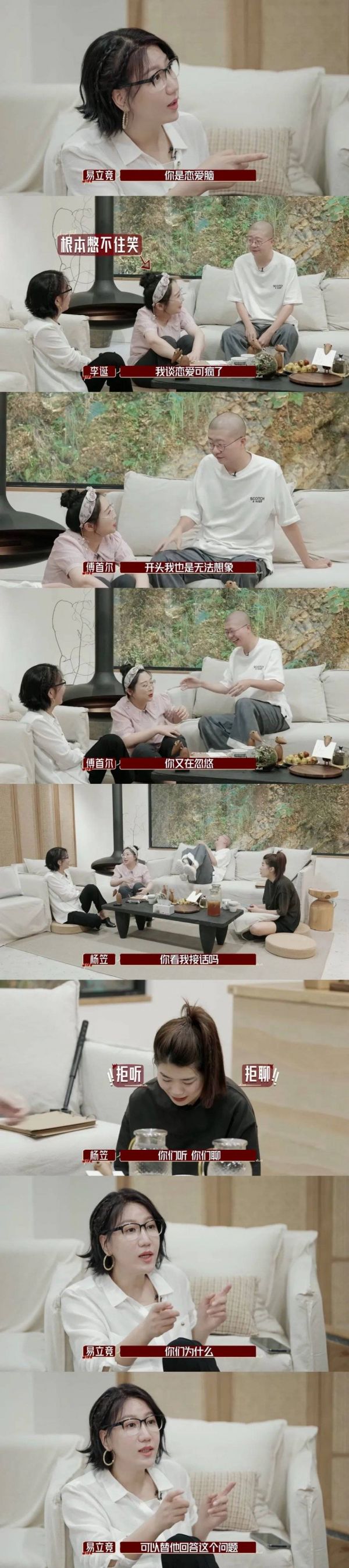 几期节目看下来,你很难不对易立竞抱以同情。当对面有三个人同时为采访对象解围、解释时,谁都无法“大战”成功。哪怕是没什么敏感点的“你是恋爱脑吗”“你觉得自己性感吗”等问题。