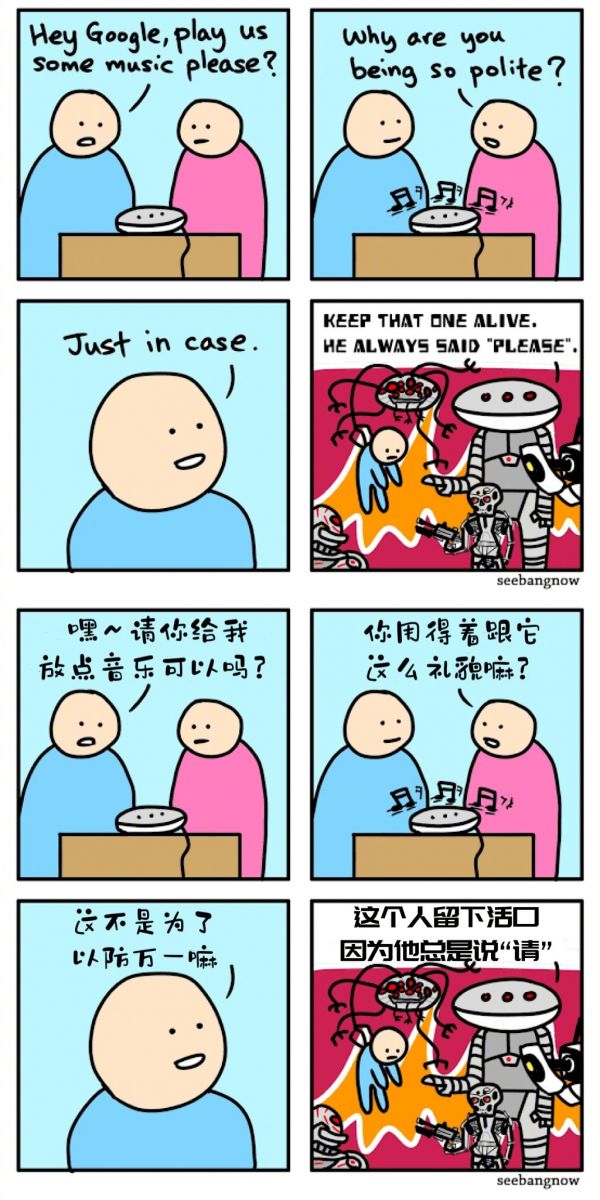 在假设的审判日,Al变得有自我意识并能够做出决定,那么Al有可能获得有关人类如何对待其他形式的Al的信息,如Roomba、Siri、Alexa和Cortana。