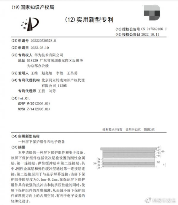 不仅如此,继上次细挖出华为Mate X3即将搭载的新型石墨烯专利后,最近又有网友挖到两份与华为Mate X3相关的屏幕专利,华为研发出一种剪切增稠的材料,加入到原有“硬-软-硬”屏幕叠层结构的第二层,具备大幅减缓内屏着地的强冲击力特性,以及降低屏幕弯折的弱应力影响。