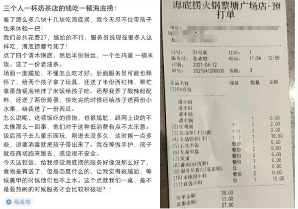 原因是,在很多人看来,为什么海底捞会换掉自己的牛肉粒,为什么海底捞会禁止自带食材,为什么又会规定必须点锅底,是被羊毛党薅秃了。毕竟即便是过了两年多了,江湖上依旧流传着“妈妈带两个孩子去海底捞,只花了27元,还吐槽服务员态度”的薅羊毛故事。