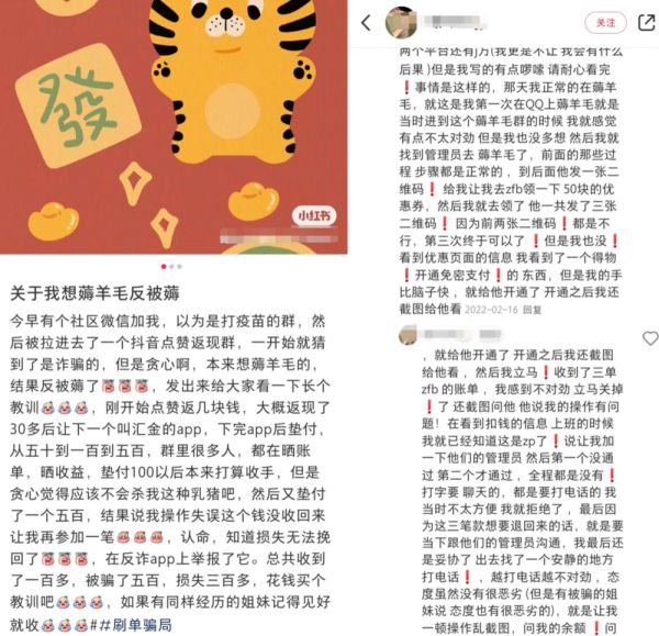 而与小格不同的是,没有“薅羊毛”经验的人很容易就会掉入“羊毛党”的陷阱。在网上,关于自己“薅羊毛”反被“薅”的经历数不胜数。轻则点击不明链接,下载购物APP,诱骗多次消费,重则直接进入某个钓鱼平台,被不法分子掏空钱包,得不偿失。