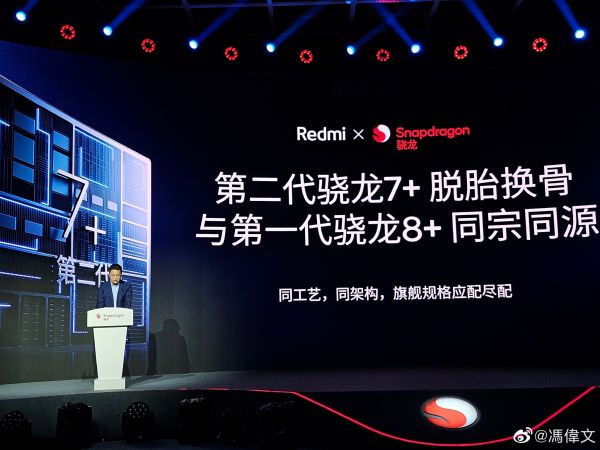 [笑而不语]重铸骁龙 7 系神 U,Redmi 义不容辞。明牌第二代骁龙 7+ 移动平台就是骁龙 8 系为基础魔改,包括制程、核心架构、功能特性等。