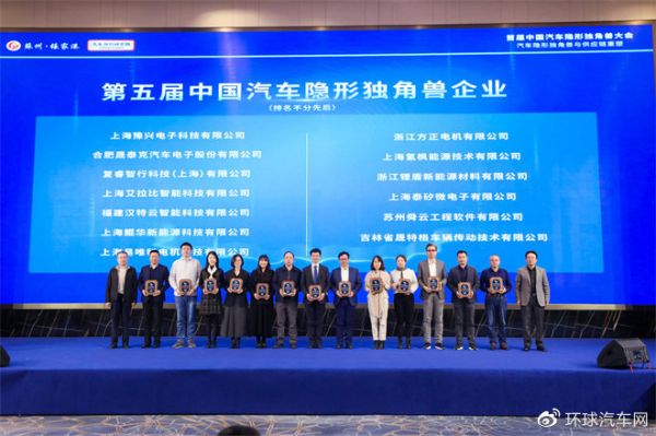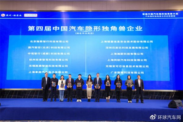 独角兽企业,智能化与电动化是其显著特征,其产品类型前期以硬件为主,软件占比较少,但随着技术的革新和消费需求的更新,后期会有大批软件企业加入;此外,在大会现场公布了第四届、第五届汽车隐形独角兽名单的发布。获得第四届中国汽车隐形独角兽称号的企业是北京踏歌智行科技有限公司、国汽智控(北京)科技有限公司、中瓴智行(成都)科技休斯、杭州宏景智驾科技有限公司、无锡胜鼎智能科技有限公司、上海拿森汽车电子有限公司、上海银基信息安全技术股份有限公司、深圳巴斯巴科技发展有限公司、上海瀚薪科技有限公司、上海同驭汽车科技有限公司、无锡安可芯信息技术有限公司、广东数鼎科技有限公司。