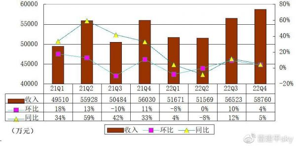 荔枝2022年第四季度净营收为5.876亿元,较2021年第四季度的5.603亿元增长5%。
