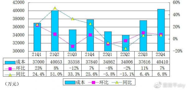 荔枝2022年第四季度成本为4.041亿元,较2021年第四季度的3.784亿元增长7%。
