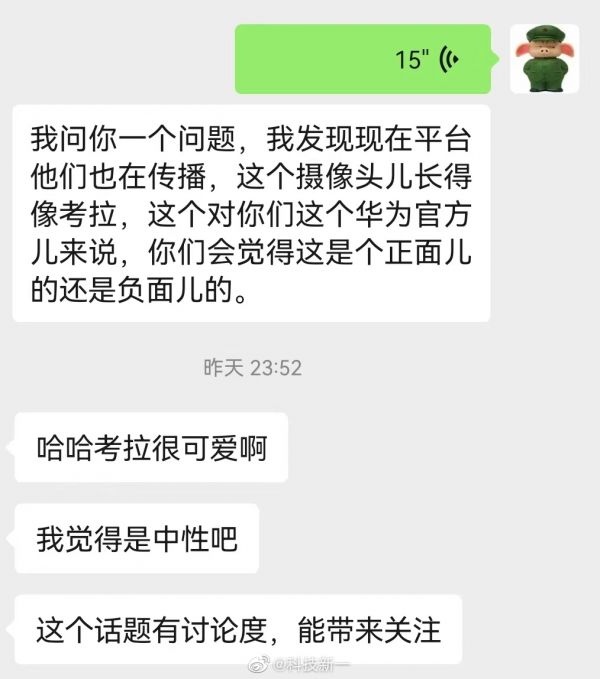 我说华为P60摄像头长得像考拉,然后有喷子说我在黑华为。连华为官方的人都说这是个可以传播的点,我咋就黑华为了?然后我特别困惑的是:为啥我即使夸华为美。也有人说我是在黑华为?[允悲]