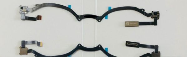 首先是一张环绕用户眼睛的带状排线,这组电缆可以将显示用的零组件连接到电路板上,似乎也暗示了苹果首款 AR/VR 设备的大致外观设计,类似于目前市面上主流的 AR 眼镜造型。