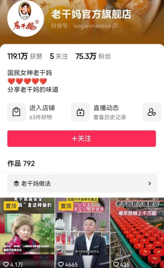 这一反常的举动,才引发了疑似“退网”的传闻。近年来,老干妈在互联网市场的营销并不如人意,其抖音发布的700多条视频,最高的一条点赞数才4万;几个月前,老干妈在某平台直播三天,销售额仅有80万。对比每年几十亿的营收,这一数字称得上惨不忍睹。