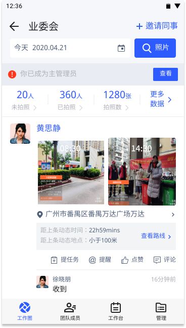 马克水印相机拍摄的照片可以自动同步团队,并且水印照片自动同步团队后,再也不用在工作群里面刷图和找图了。只需要翻看团队的照片即可了解当日的工作情况,并且团队内还可以进行任务的指派,使得整个工作环境形成闭环,每件事情都能轻松跟进。在传统团队管理中,人员时常要拍照报备自己的工作情况,但是人数太多照片容易丢失或查找不便,工作汇报成为员工负担,对此,马克水印相机的团队工作圈可以有效解决这类工作汇报问题。